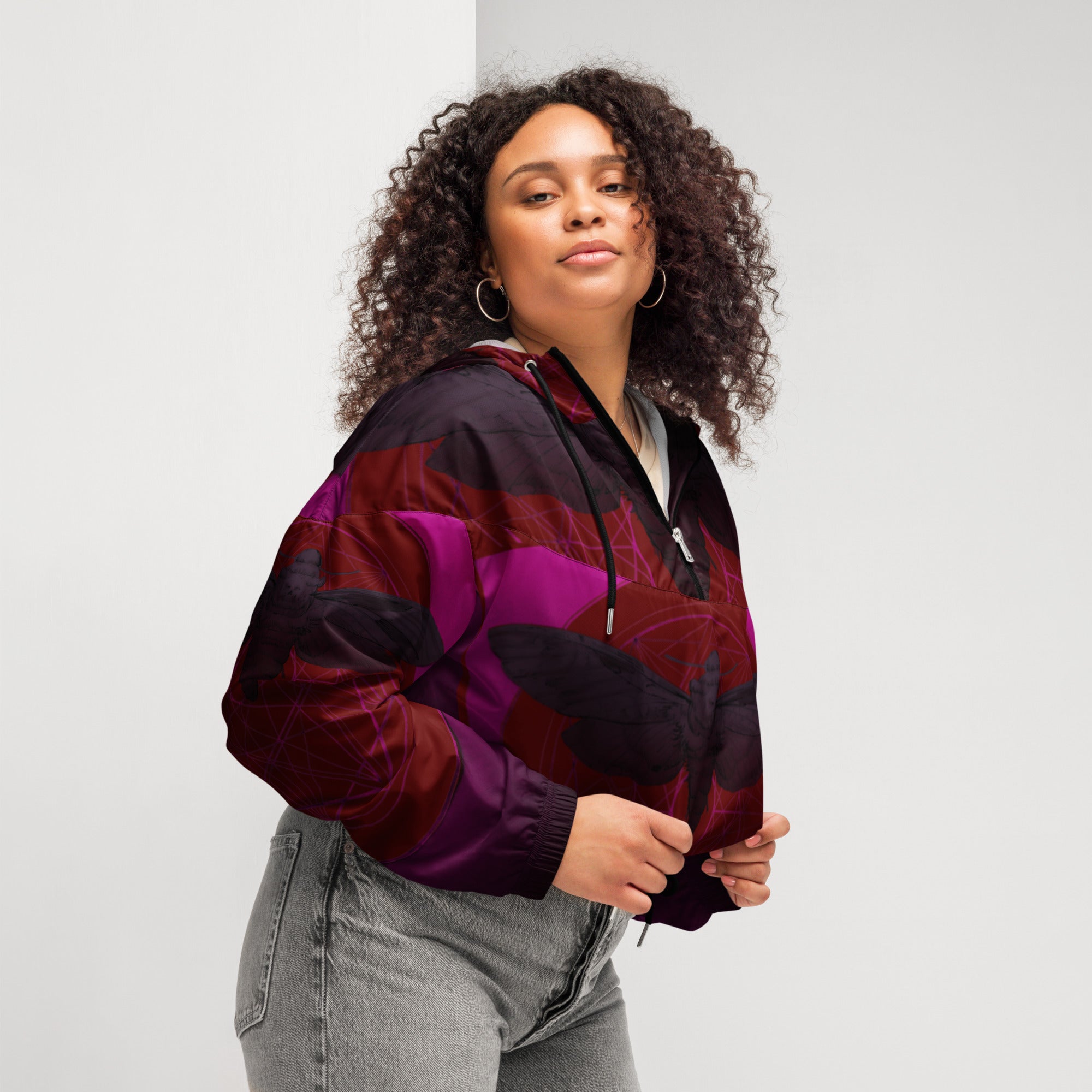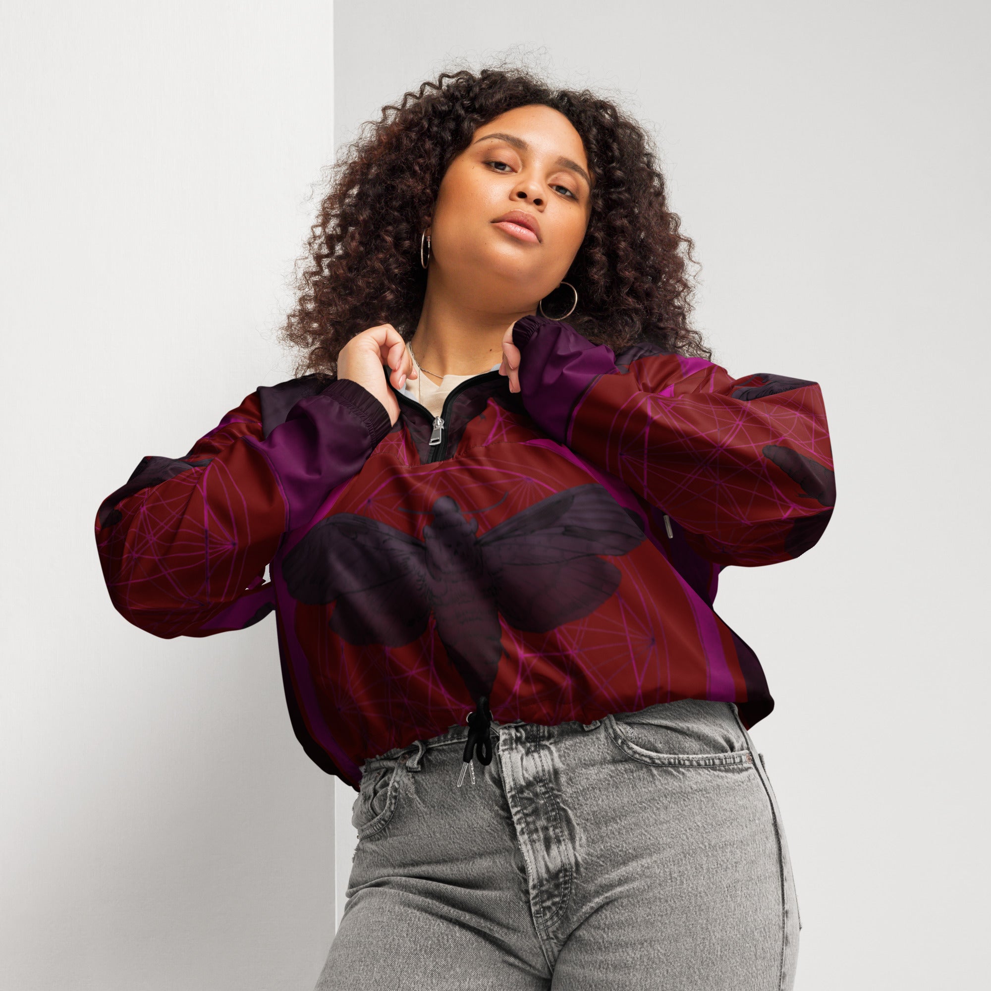 A delve into this new product with a cool old artwork,, I would love to customis=zed these even tighter . it Looks cool even as is, Hike in style without the rain getting in the way—this cropped windbreaker is lightweight, waterproof, and suitable for every kind of adventure. Features include side-slit pockets, breathable mesh lining, and adjustable drawcords on the hood and waist to support all your stylish outdoor looks.