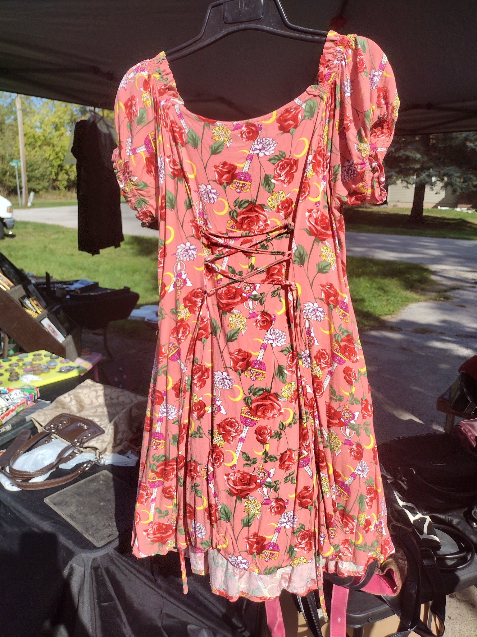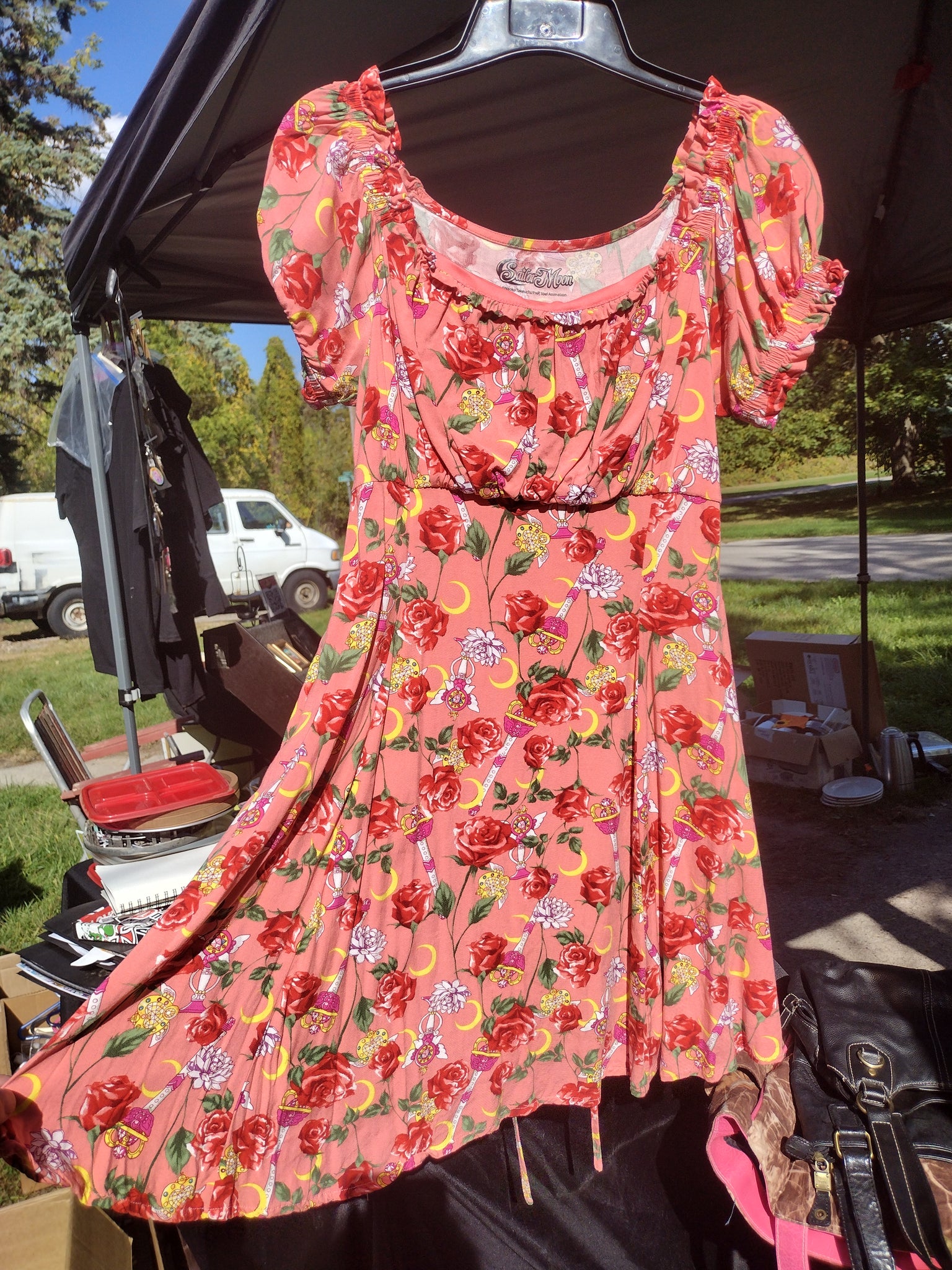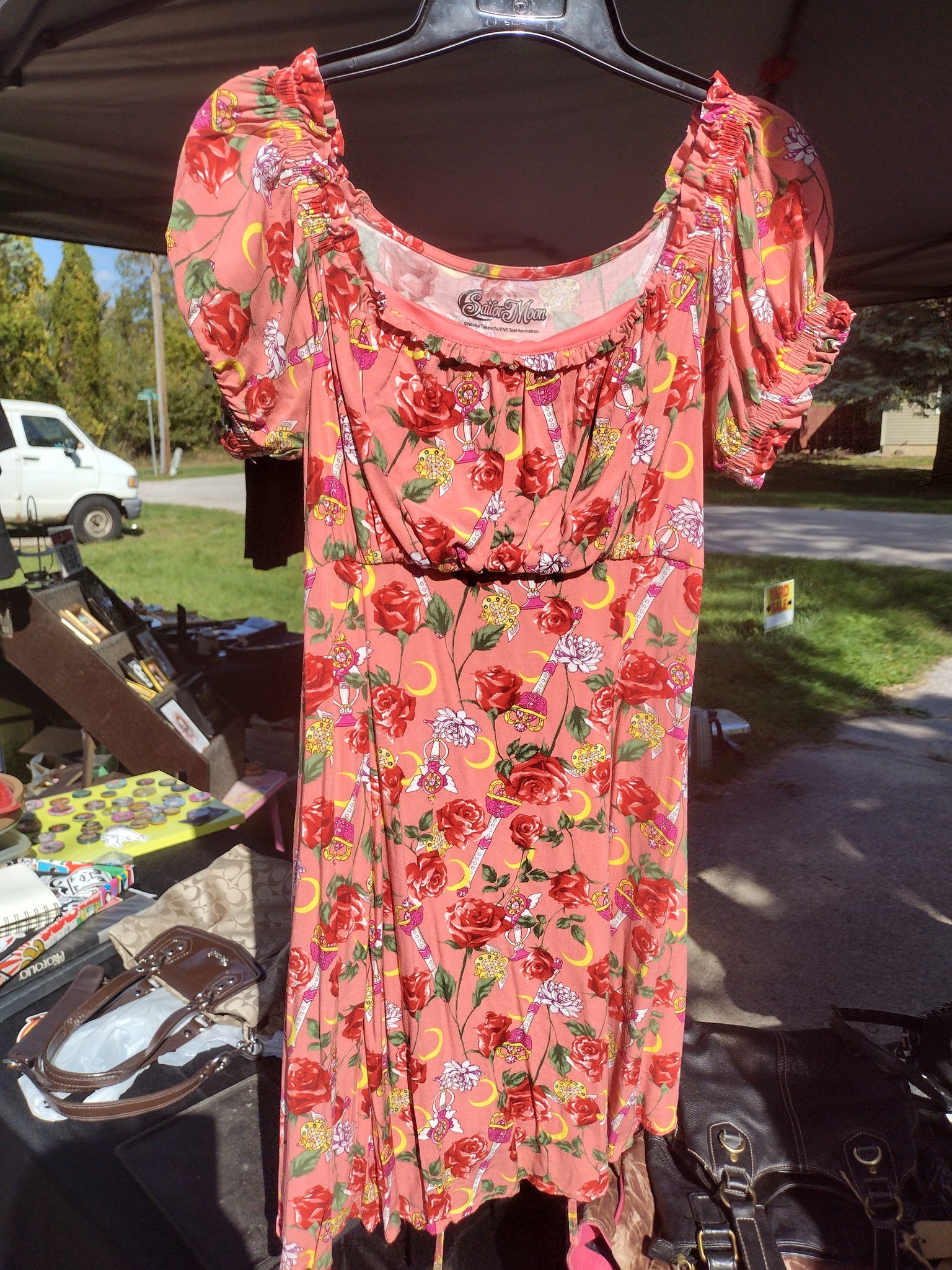 Size Small Sailor moon summer dress. !   Wow I scored a good piece here at My favorite resale shop.  And girl I wanna keep her she fits like a glove.. I'm a medium/ small I feel and this is so perfect .but I cannot keep her for myself.  Summer is over and I neeeeed the money bad.  She's super fresh like idk im surprised she didn't have manufacture/marketing tags .